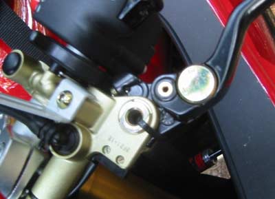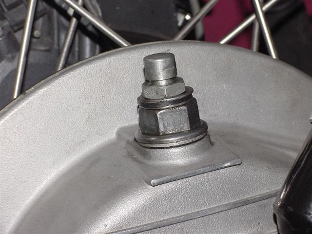 The top nut holding the steering head together has four notches in it for a special type of spanner wrench, very similar to the adjusting wrench for the rear shocks, I made one out of 1/8” flat stock to match the outside radius of the nut and notch. It doesn’t take too long to cut one out with a hacksaw and a ½ round bastard file. Use a compass to scribe the arc on the steel, add the post for the notch and cut horizontal slots down to the arc. Cut away the little tabs left over from the saw and clean up with the file. Make sure you put a handle on your file, poking yourself in the wrist with the pointed end of the file will ruin your riding for a while.